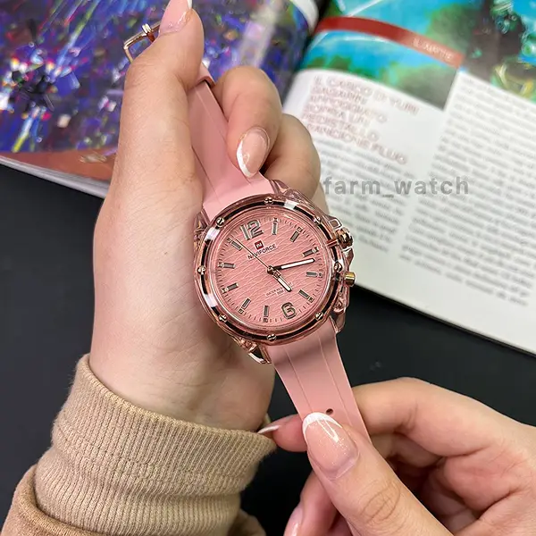 نیوی فورس در مدلهای زنانه، تعادل خوبی بین ظرافت و دوام ایجاد کرده است. ساعت زنانه نیوی فورس معمولاً با صفحههای ظریف، نگینهای درخشان و بندهای استیل یا حصیری طراحی میشود که هم برای استفاده روزمره و هم برای موقعیتهای نیمهرسمی، انتخابی شیک و قابل اعتماد است.