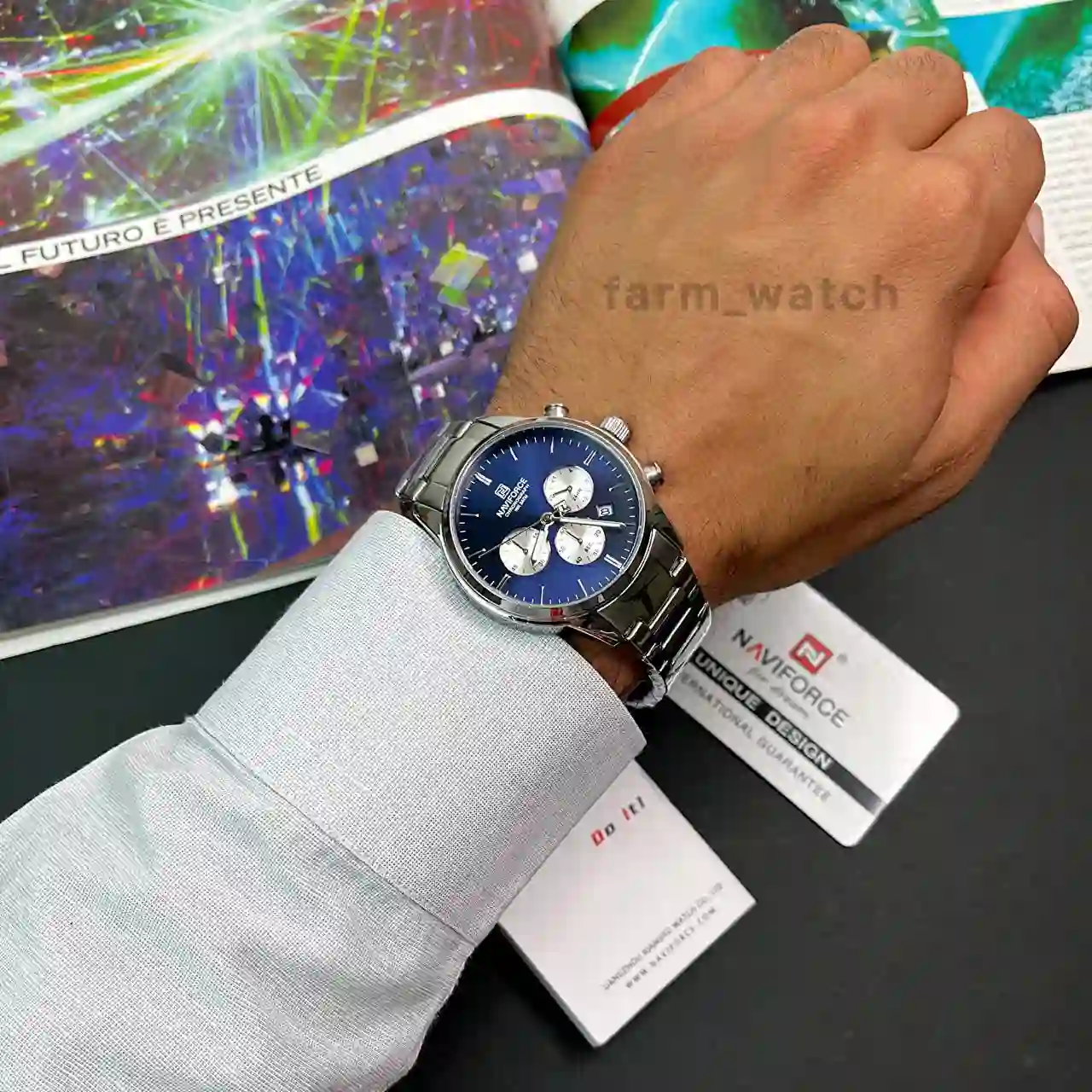 • تضمین اصالت کالا: یکی از مهم‌ترین دغدغه‌ها هنگام خرید ساعت Naviforce، تشخیص مدل اصل از نمونه‌های فیک است. در مزرعه ساعت، تمامی ساعت‌ها با تضمین اصالت عرضه می‌شوند تا از بابت موتور اصلی، کیفیت ساخت و دوام محصول، خیالتان کاملاً راحت باشد.
