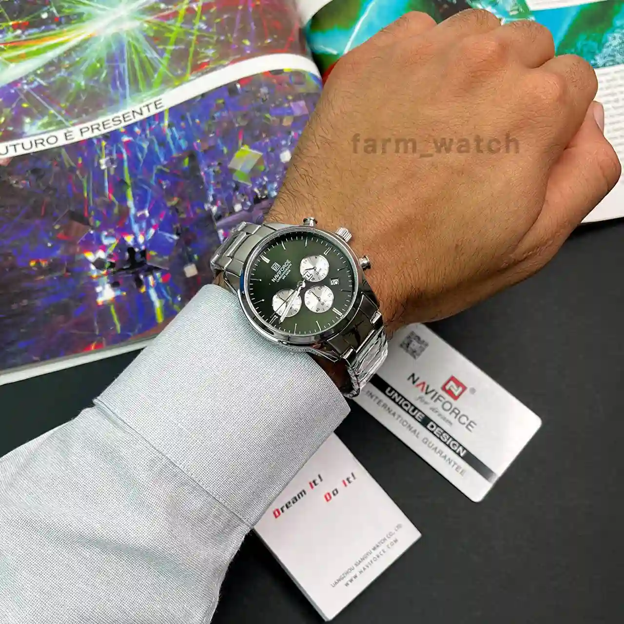 - تضمین اصالت کالا: یکی از مهمترین دغدغهها هنگام خرید ساعت Naviforce، تشخیص مدل اصل از نمونههای فیک است. در مزرعه ساعت، تمامی ساعتها با تضمین اصالت عرضه میشوند تا از بابت موتور اصلی، کیفیت ساخت و دوام محصول، خیالتان کاملاً راحت باشد.